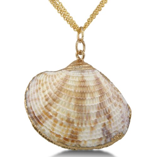 24kt Dipped Natural, This fashion forward 24 karat gold dipped natural seashell pendant on a three strand necklace is a must have. A yellow gold outline adds a touch of elegance to this beach inspired piece. Pendant is 1 1/2 inches long long and hangs on a three strand 18 inch yellow gold overlay chain.