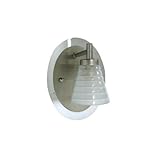 Portfolio , This sconce is really modern halogen light wall fixture. It looks slick and neat. The clear glass shade has many frosted bands etched all around adding to its unique dimension. Brushed Nickel and Chrome finish uses Halogen 50 watt max. Height 7.25 x Width 5.88 x Depth 5.25 in. (Read More)