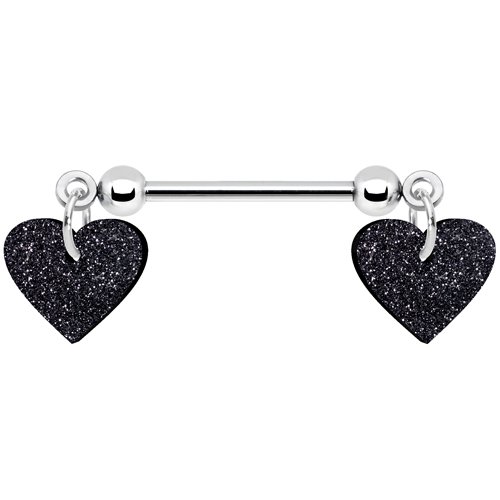 Black Glitter Heart, Sold individually, purchase a quantity of 2 for a pair. Show some love with heart nipple jewelry. This surgical steel nipple ring features two acrylic heart dangles with sparkling glitter.. Specifications: 14 Gauge (1.6mm), 5/8" (16mm), 316L Surgical Grade Stainless Steel, Acrylic Dangles. Black Glitter Heart Nipple Ring